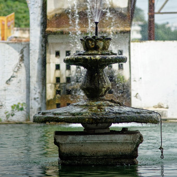 A huge banyan tree which seems eternally to be fresh with life completes the picture providing shade and the required ambiance to the monument. An underground stream that begins from a nearby well above the junction of Harsul River with a tributary stream some eight km away is the source of continuous water supply to the mill. The water-pipe proceeds to the Panchakki reservoir made and is dropped into the cistern from a height to generate necessary electrical power and also turn the large grinding stones of the flour mill. The excess water is made to flow into the nearby Kham River. Scientifically the cistern or huge tank lies in front of the mosque whose bottom forms the roof of a hall. The cool chambers of the hall are ornamented with fountains which were used by pilgrims during the hot summer season. A panoramic view of the Kham River from the hall is beautiful. The elongated reservoir and the fountains in the Panchakki water-mill site were added to the monumental structure twenty years later by Jamil Baig Khan.